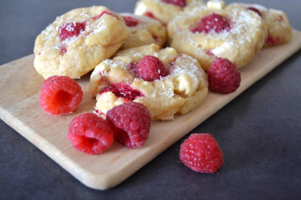 Cookies fondants chocolat blanc, coco & framboises