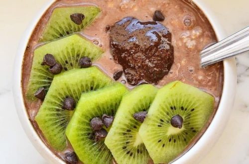 Le lendemain matin, démouler le bowlflan (passer rapidement sous l’eau tiède/passer une lame fine sous les bords du bol) et décorer de mangue fraîche et de noix de coco.